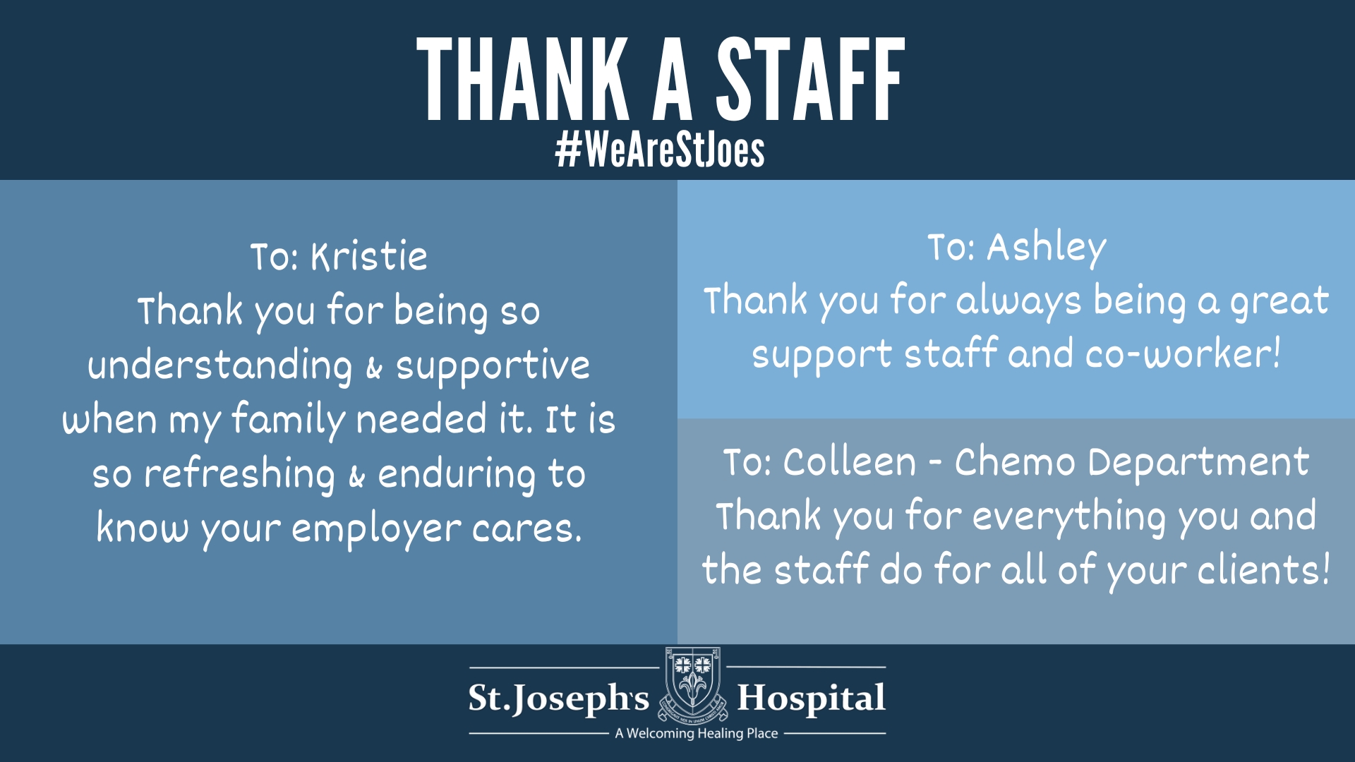 Have you recently had a great experience at St. Joe’s because of a staff member? Are you wanting to send a special thank you? Here’s your chance!